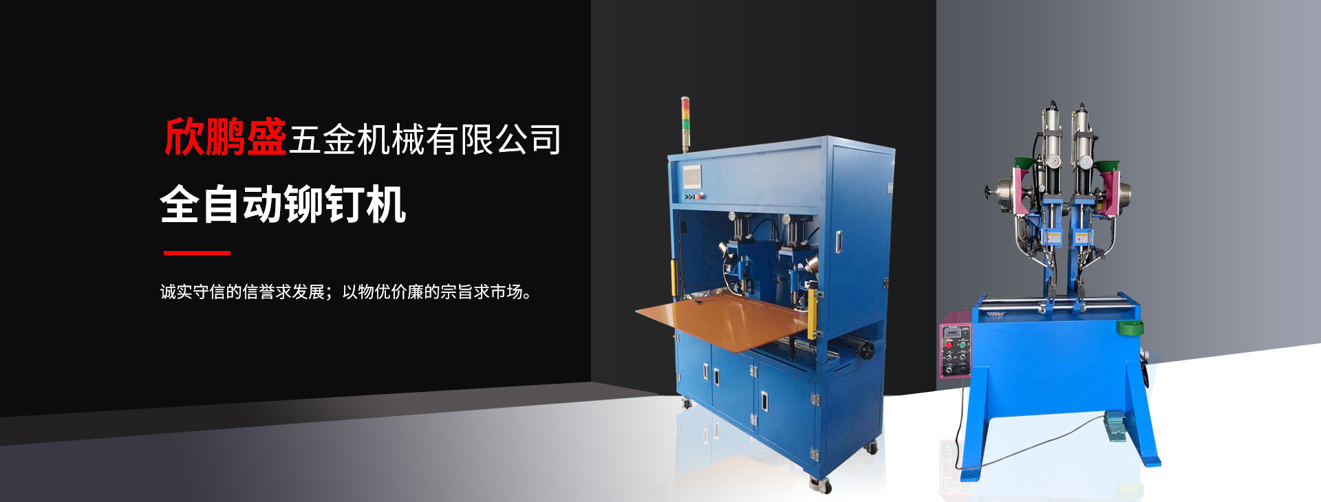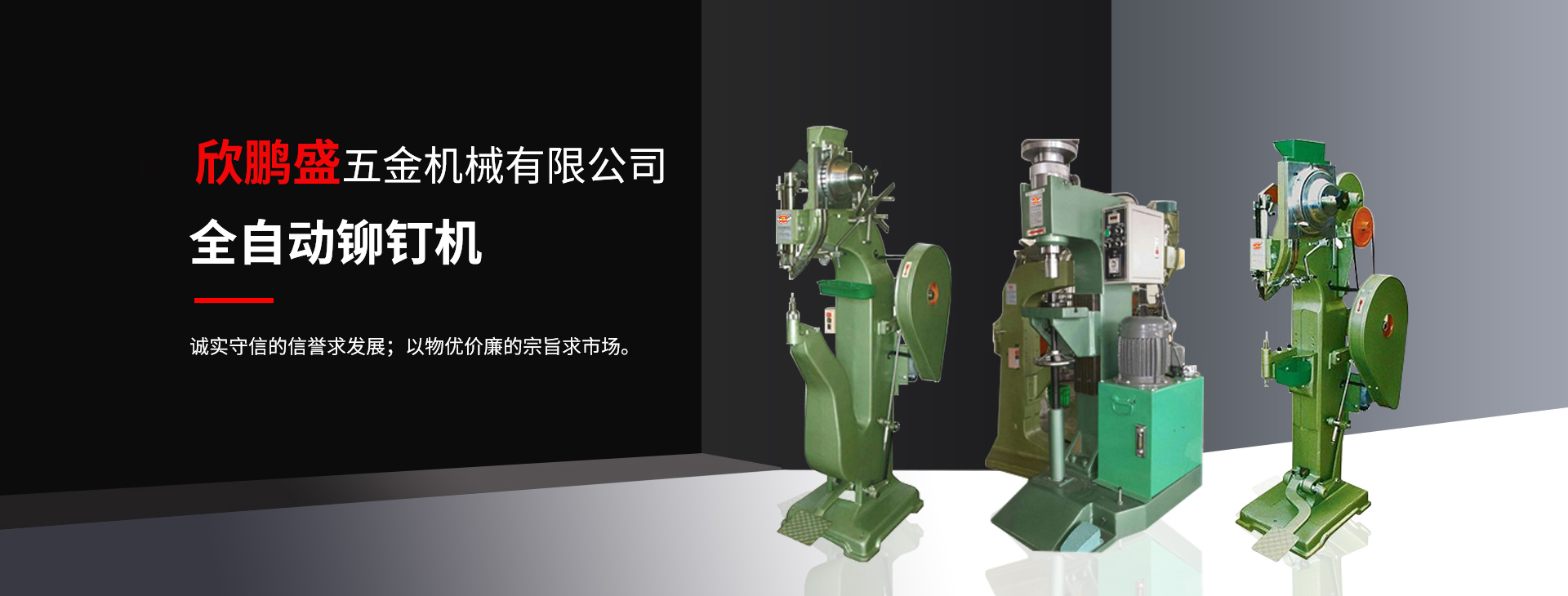 欣鵬盛 鉚釘機(jī) 為“制造出優(yōu)良機(jī)械”欣鵬盛愿與海內(nèi)外各屆朋友攜手共進(jìn)、追求優(yōu)良、挑戰(zhàn)未來、共創(chuàng)輝煌。